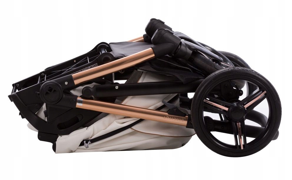 Система SAS мінімізує вібрацію під час руху по нерівності, а ДМ захищає від блокуючих коліс на таких поверхнях. Колеса з гнучкі колеса еластичні, і в той же час вони не потребують накачування і не піддаються проколенню, ви можете легко скласти коляску для ущільнення - також із підключеним сидінням.