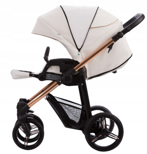 Шукаєте коляску, яка забезпечить комфорт вашій дитині незалежно від погоди? Обирайте Nico Estilo Pro! Спальний мішок замість чохла дозволить вам блискавично загорнути малюка, значно скоротивши підготовку до прогулянки. Ряд функціональних рішень полегшить використання коляски. А поєднання білої або чорної екошкіри з блискучою структурою мідного кольору та численні елегантні деталі забезпечують стильний дизайн моделі.