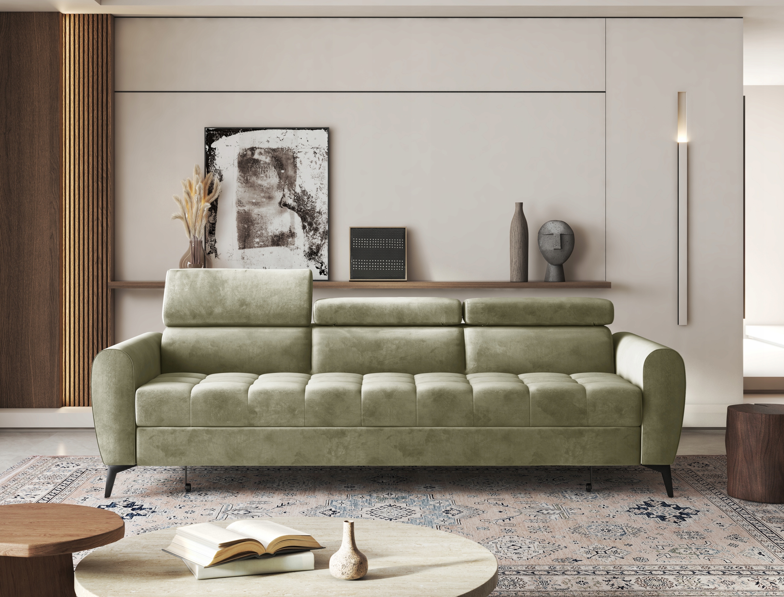 Бежевий диван Bjorn з функцією сну з регульованими підголівниками