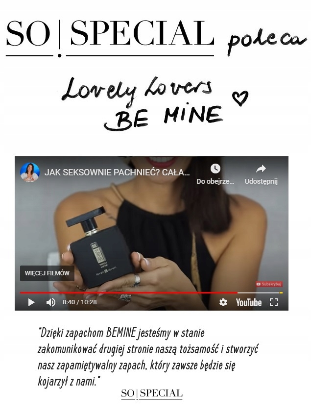 Щоб переглянути відео, перейдіть на YouTube і введіть пошуковий запит "ЯК ПАХНУТИ СЕКСУАЛЬНО? ВСЯ ПРАВДА ПРО ФЕРОМОНИ SoSpecial". SoSpecial розповідає про феромони, які значно сприяють зацікавленню іншої статі, і пояснює, чому вона обрала LOVELY LOVERS BEMINE.