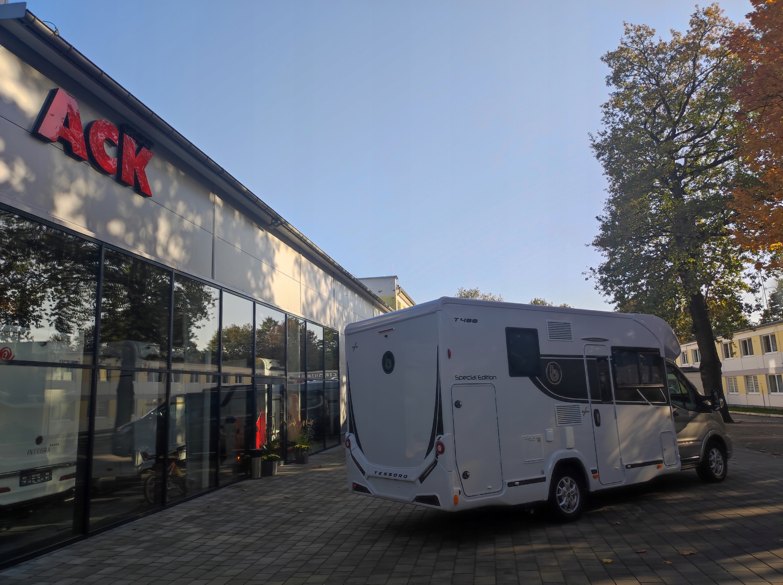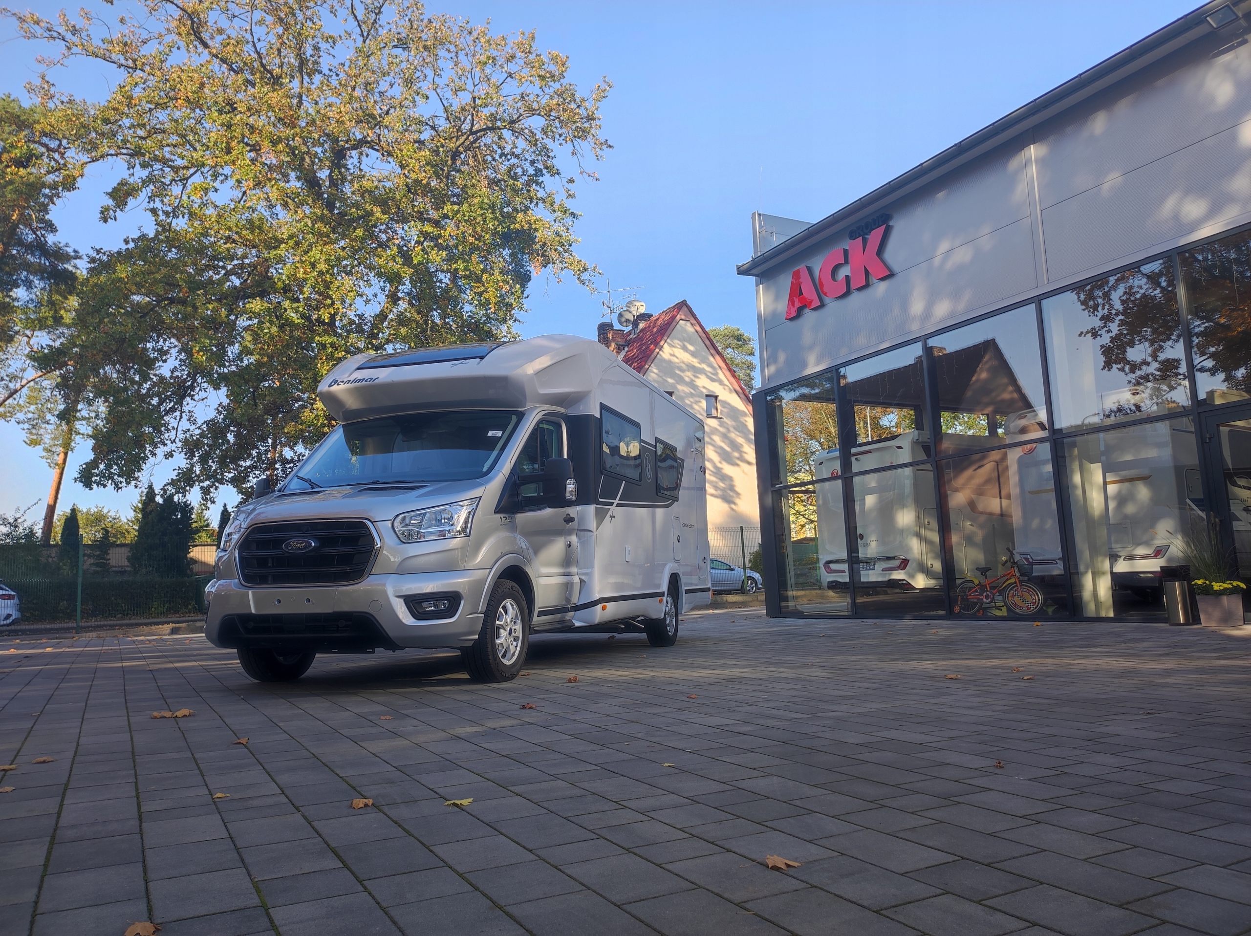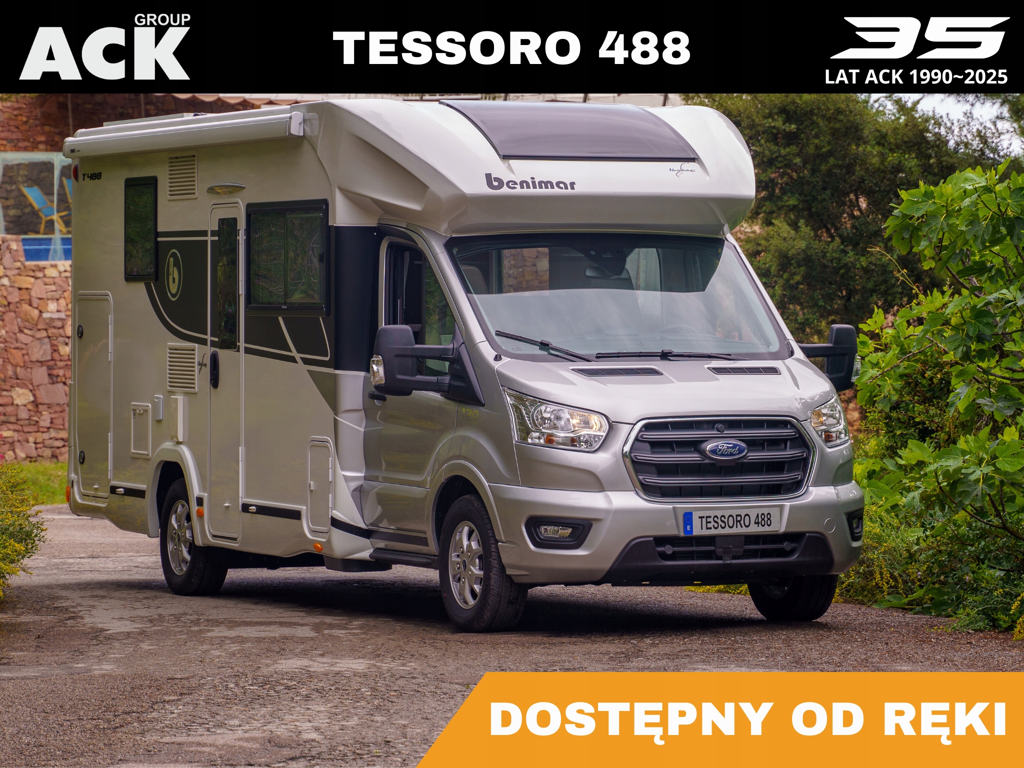 Benimar Tessoro на базі Ford до 3500 кг з двигуном 170 к. с., автоматичною коробкою передач і пакетом Northautokapp. Комфортна вітальня з кріпленнями ISOFIX, розсувним столиком і світлодіодним освітленням. 4 водійських і спальних місця, ліжко з електроприводом максимальною вагою 230 кг. Кухня з великим холодильником на 150 л, плитою з 3 конфорками, духовкою (за бажанням). Душ роздільний, опалення Webasto, обігрівач Truma. Просторий багажник, панорамне вікно, сонячні панелі та камера заднього виду.
