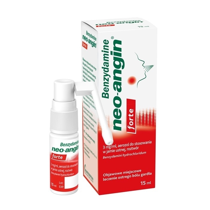 Бензидамін нео-ангін форте 3 мг/мл – лікарський засіб у формі аерозолю, призначений для застосування в порожнині рота та горла. Діючою речовиною препарату є бензидаміну гідрохлорид, який входить до групи нестероїдних протизапальних засобів НПЗЗ. Бензидамін нео-ангін форте – препарат, який має знеболюючу та протинабрякову дію.