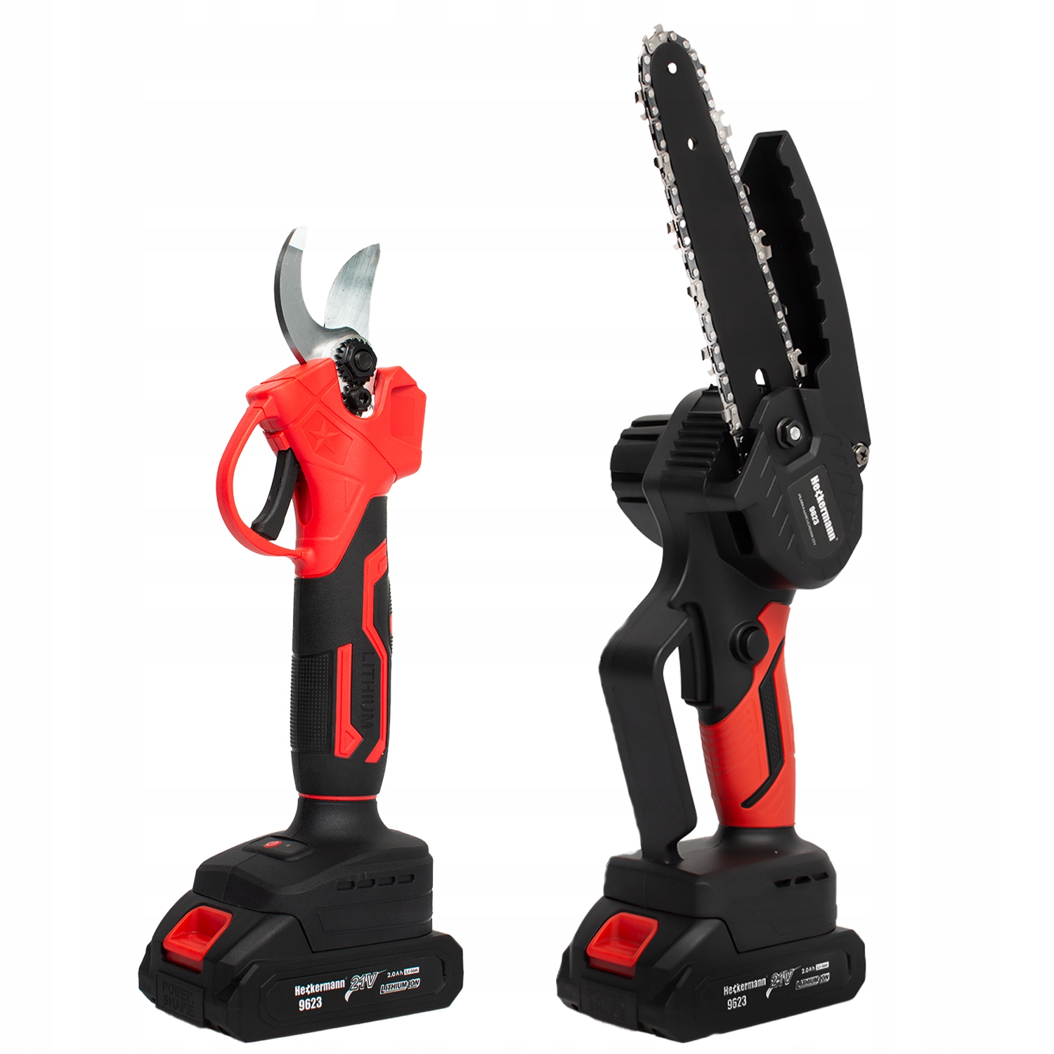 Набір 3 в 1! Міні-акумуляторна бензопила Heckermann 6" + акумуляторний секатор + подовжувач до 2 метрів!