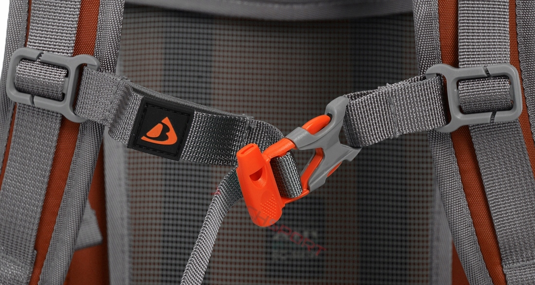 Ремінь грудної клітки має гнучку секцію, яка дозволяє вільно дихати та вертикальну систему регулювання. У пряжку було вбудовано рятувальний свист:
