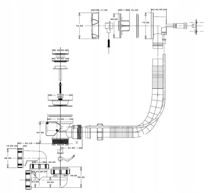 Сифон для ванни Akces чорний з автоматичною пробкою 19977