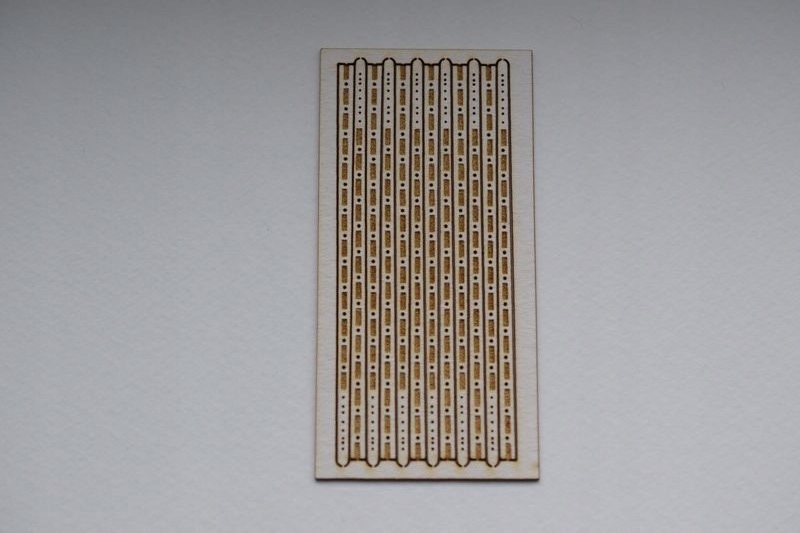 Краї елементів мають коричневий колір, що є природним результатом лазерної обробки.