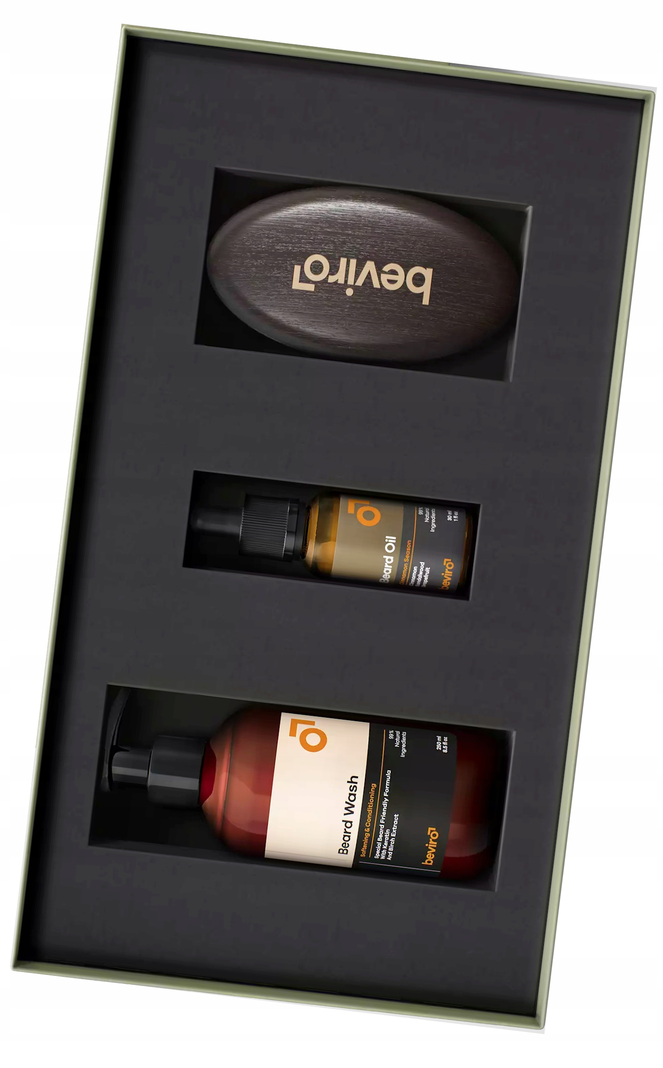 Beviro Cinnamon Kit - Набір для догляду за бородою, щітка для масляного шампуню