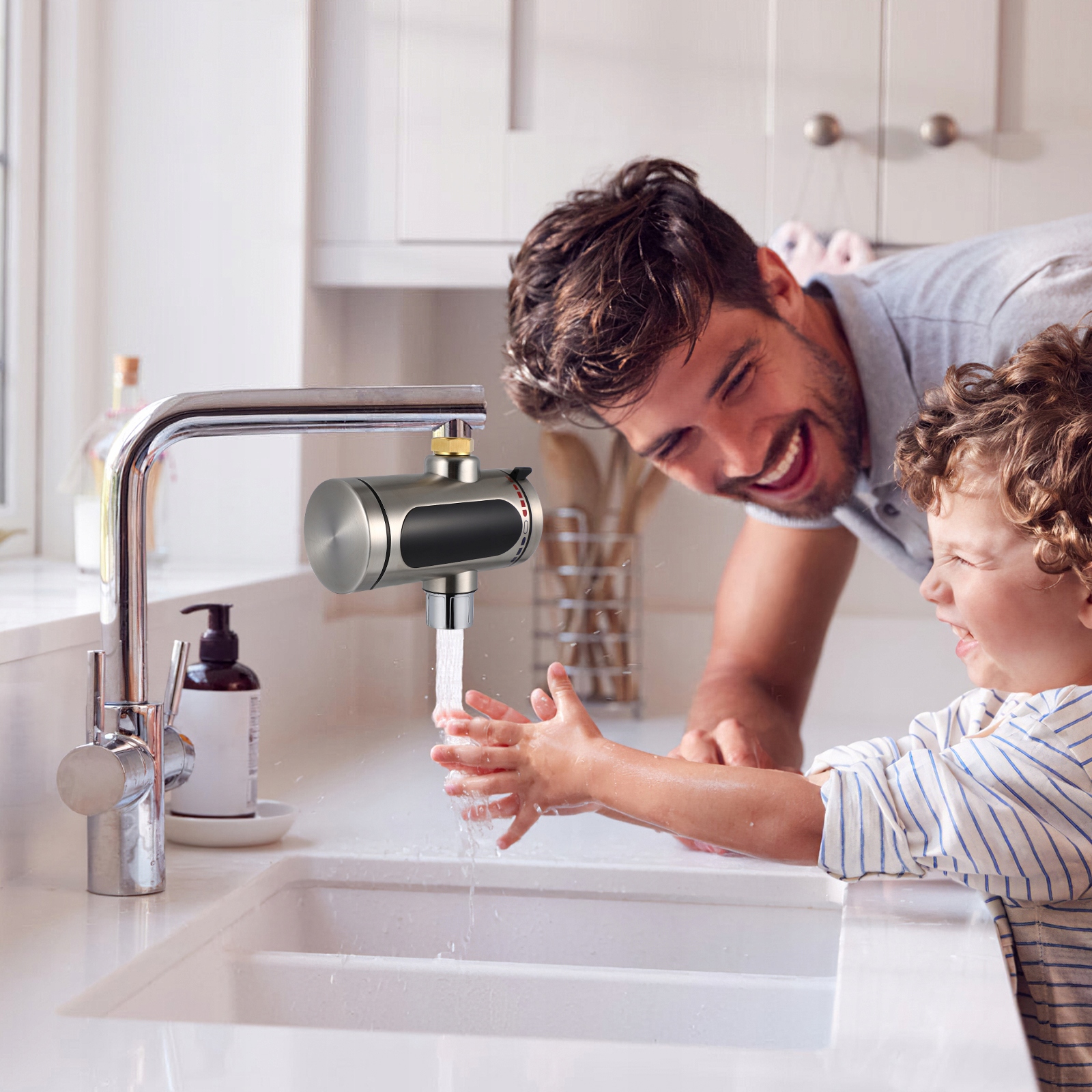 Це практичний електричний водонагрівач без бака з цифровим світлодіодним дисплеєм. Оснащений багатьма аксесуарами, цей електричний змішувач можна швидко, легко та без особливих зусиль встановити практично скрізь, де є підключення до електромережі, просто прикрутіть, підключіть. Має подвійне використання гарячої та холодної води. Ви можете чудово використовувати його на кухні, у ванній тощо.