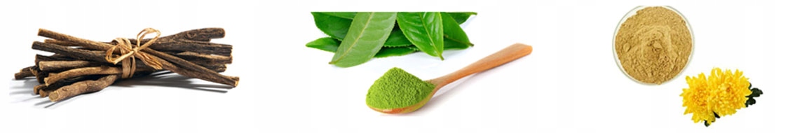 Продукт містить натуральні рослинні інгредієнти, такі як екстракт кореня солодки, екстракт чаю та екстракт квітів хризантеми.
