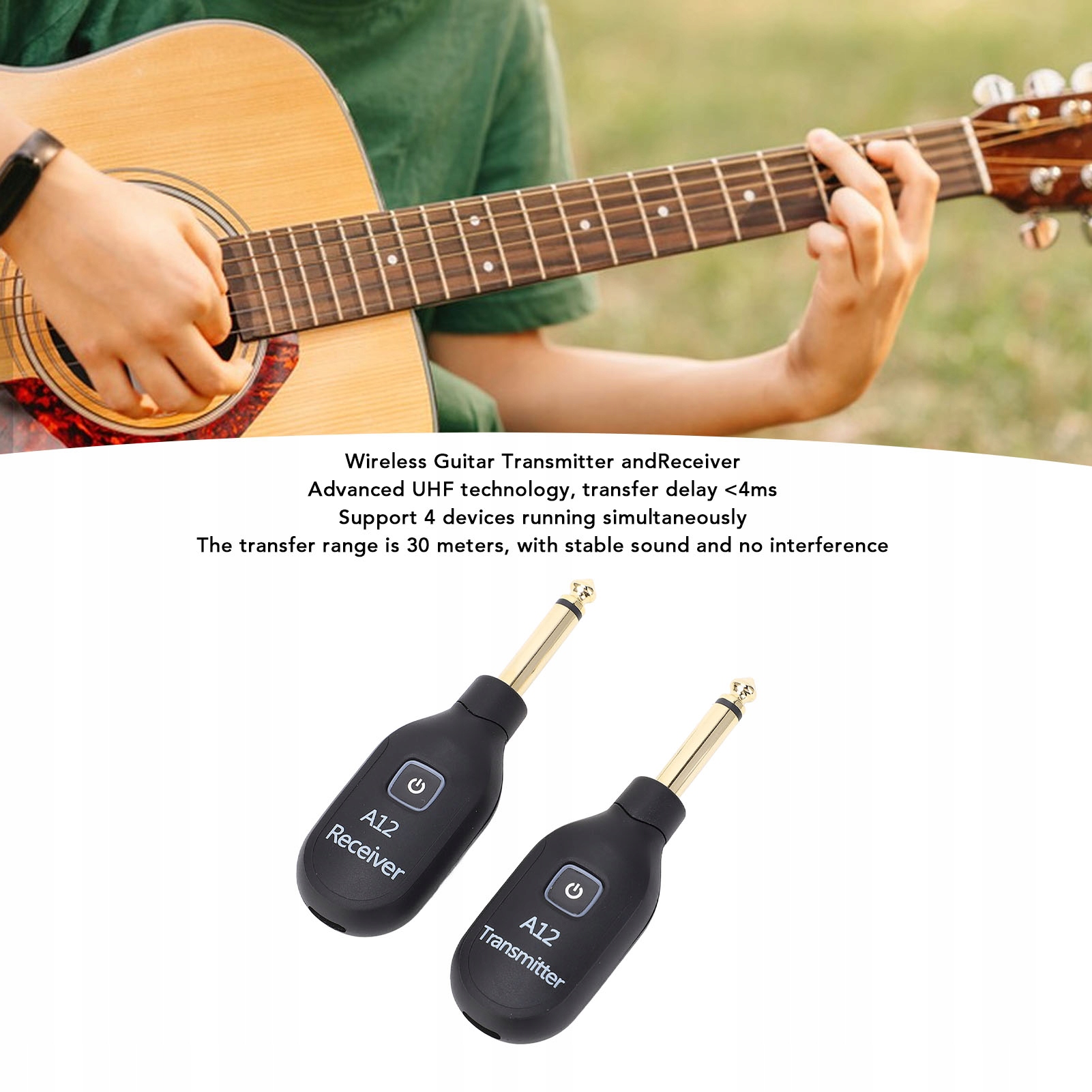 1. [Чіткий звук] Ця бездротова гітарна система використовує передову технологію UHF, затримка передачі становить менше 4 мс, що забезпечує вихід сигналу в реальному часі.