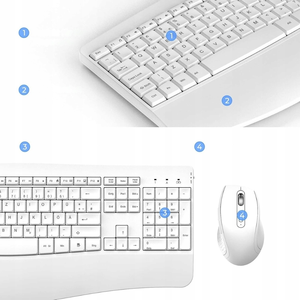 Бездротова клавіатура Seenda Qwertz клавіатура + ергономічна миша, біла