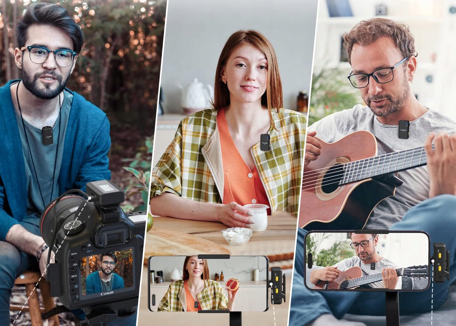 - Широка сумісність: бездротовий мікрофон FULAIM X5 постачається з адаптером для iPhone, адаптером Type-C і аудіокабелем 3,5 мм, що робить його сумісним із широким спектром пристроїв, включаючи смартфони та камери iPhone і Android.