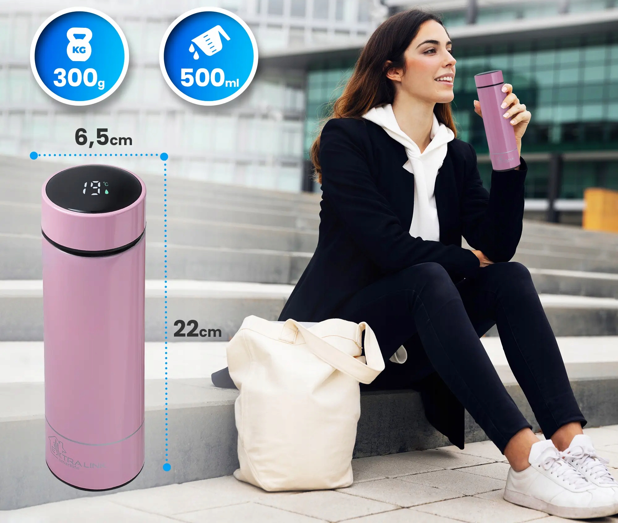 Основною перевагою термоса зі світлодіодним дисплеєм є можливість відстежувати температуру напою, що зберігається. Завдяки вбудованому термодатчику та дисплею ви можете відстежувати, чи напій має правильну температуру.