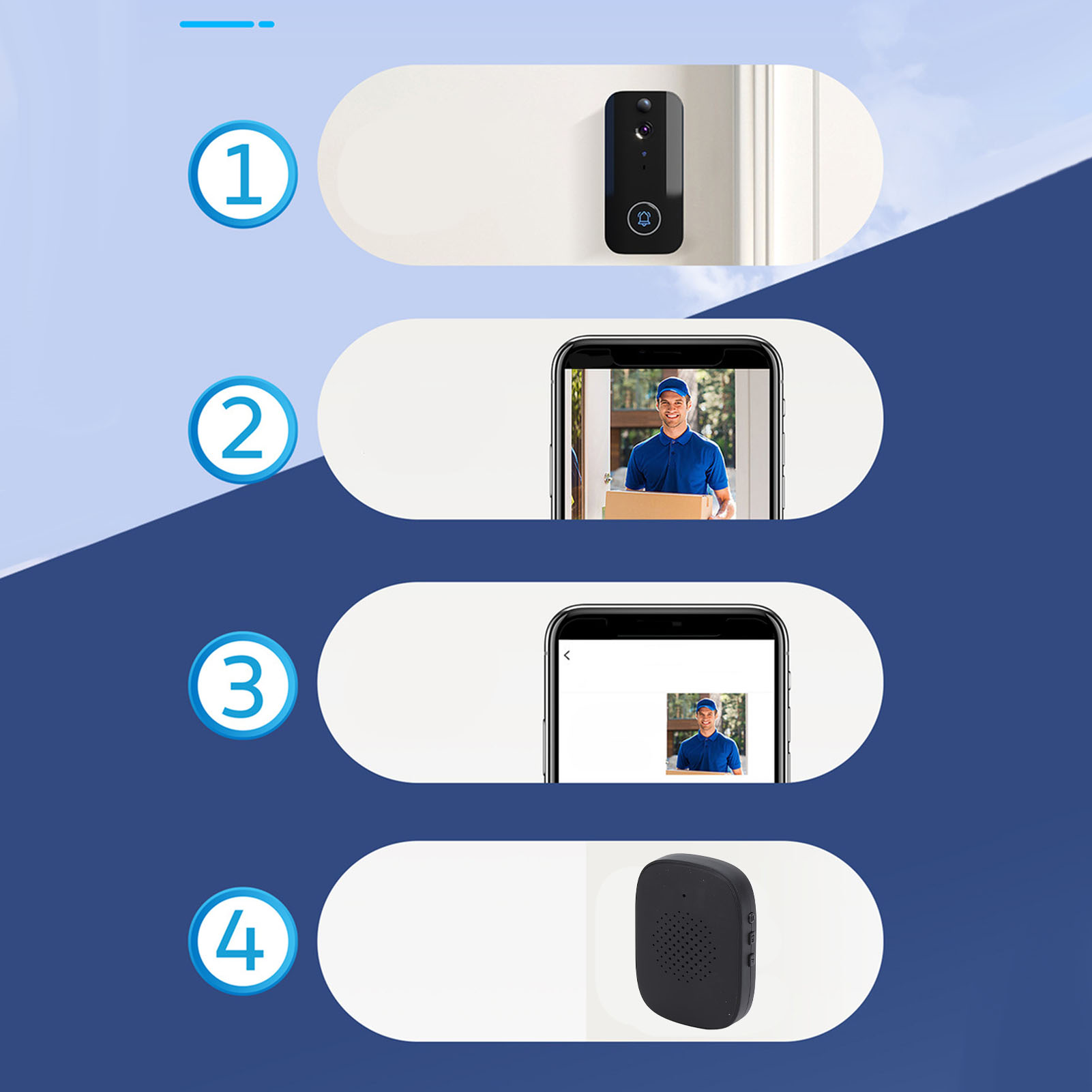 1. Сімейна система: відеокамеру можна легко підключити до 9 членів сім’ї, дозволяючи одночасне push-повідомлення всім підключеним користувачам. Перший член сім’ї, який відповість, може вести дистанційну візуальну розмову з відвідувачем біля дверного дзвінка.