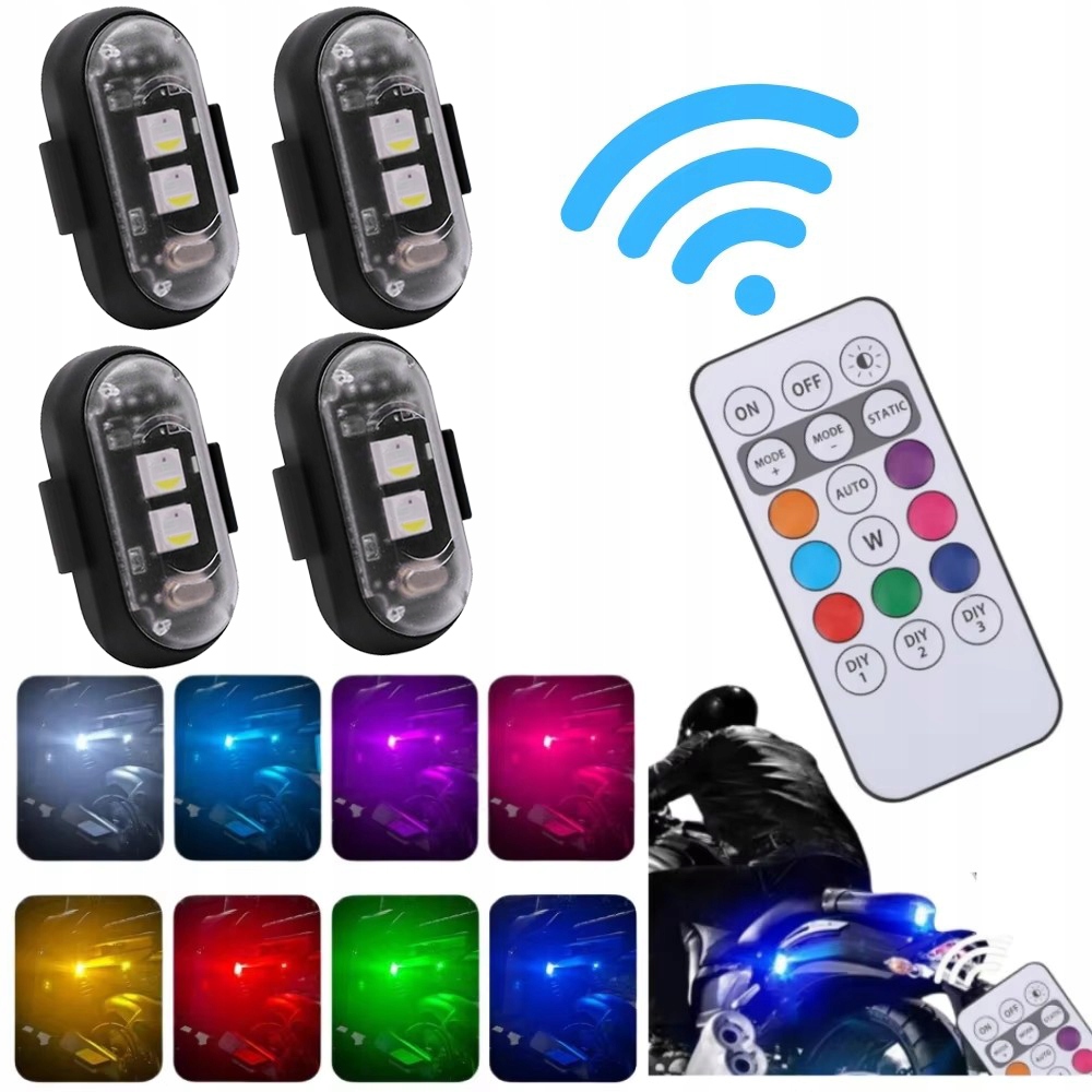 - Різноманітність кольорів: наші ліхтарі запобігання зіткненню доступні у 8 кольорах (білий, червоний, зелений, синій, жовтий, фіолетовий, рожевий, синій). 10 різних режимів: спалах із дистанційним керуванням, спалах із хлопками, швидкий спалах, спалах, повільний спалах і десять інших режимів. За потреби можна віддалено керувати різними кольорами та режимами.