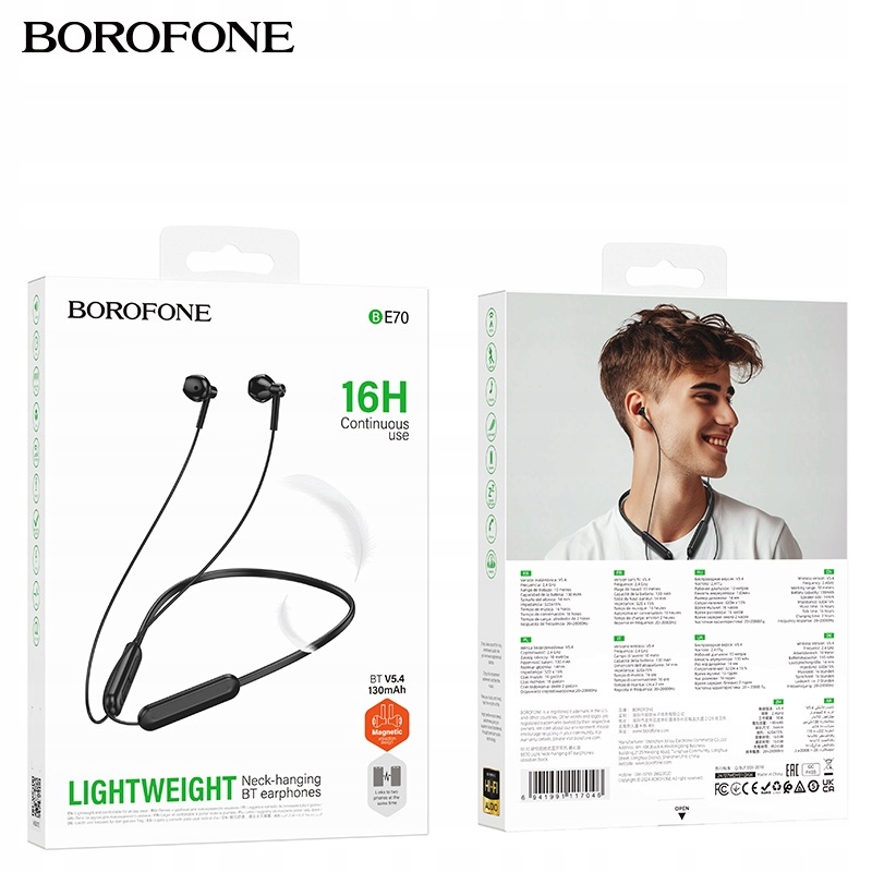 Борофон BE70 Світло - це бездротові навушники з аудіо / вушними навушниками в технології Bluetooth 5.4, оснащені кабелем довгим з'єднанням 85 см, пов'язкою на голову, а також магнітними тілами, що запобігають втраті та заплутанню навушників. У навушниках є мікрофон, який дає вам можливість проводити телефонні дзвінки та кнопки для управління музикою, регулюванням гучності або телефонними з'єднаннями та розмовами. Навушники мають багатоточкову функцію, яка дозволяє підключати два мобільні пристрої одночасно та в той же час.