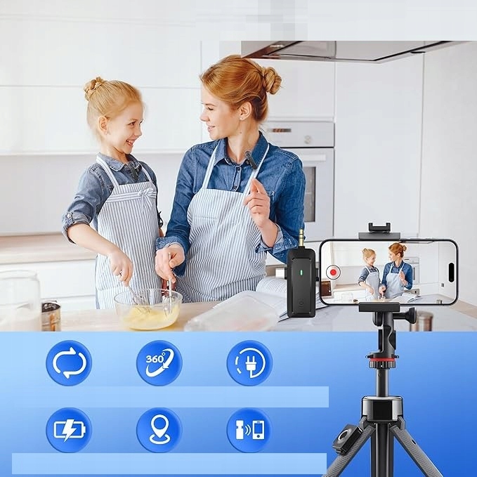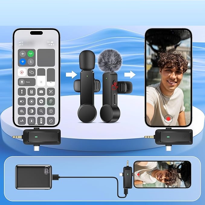 - 【Сумісність з iPhone/Android/камерою】: цей набір бездротового петличного мікрофона включає 2 петличні мікрофони та універсальний приймач 3-в-1. Працює з кількома пристроями: телефонами iPhone 15 та Android, камерою та ноутбуком. Ідеально підходить для режисерів, відеоблогерів, користувачів YouTube, мобільних журналістів і творців контенту.