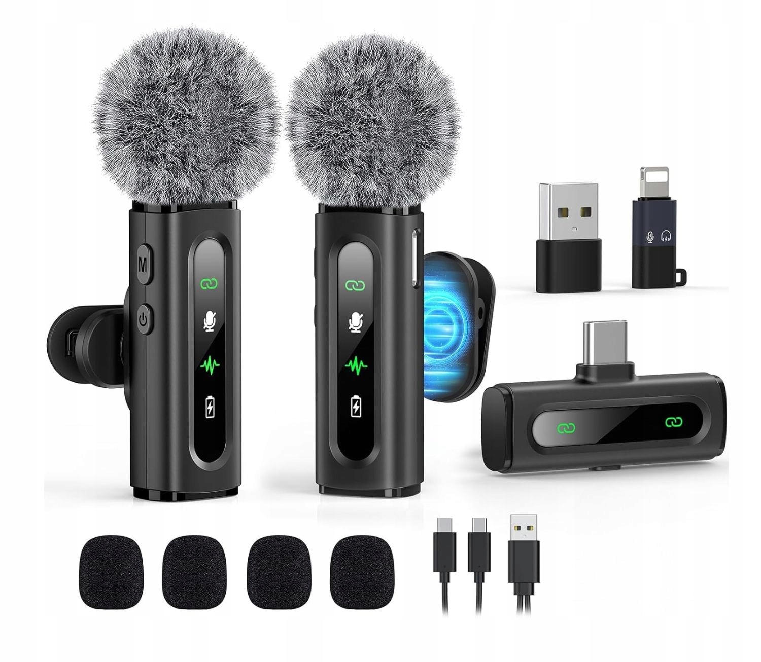 БЕЗДРОТОВІ МІКРОФОНИ USB-C 2 ПЕРЕДАВАЧІ ДЛЯ ВЛОГІВ ТА ПОДКАСТІВ З КЛІПОМ