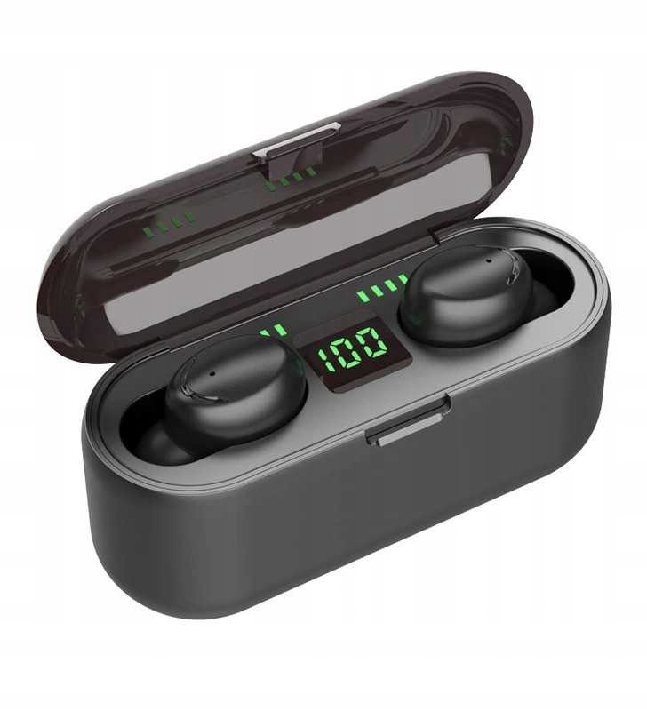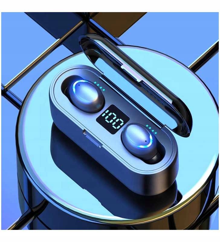 F9 має Powerbank із чітким дисплеєм, який інформує нас про стан зарядки Powerbank. Порти для навушників мають магніти, як і кришка футляра, яка закривається, що забезпечує надійне утримання всього комплекту та запобігання випаданню навушників.
