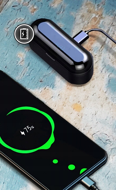 F9 мають павербанк із чітким дисплеєм який інформує нас про стан заряду Power Bank. Порти для навушників мають магніти, як і кришка футляра, яка закривається, що забезпечує надійне утримання всього комплекту та запобігання випаданню навушників.