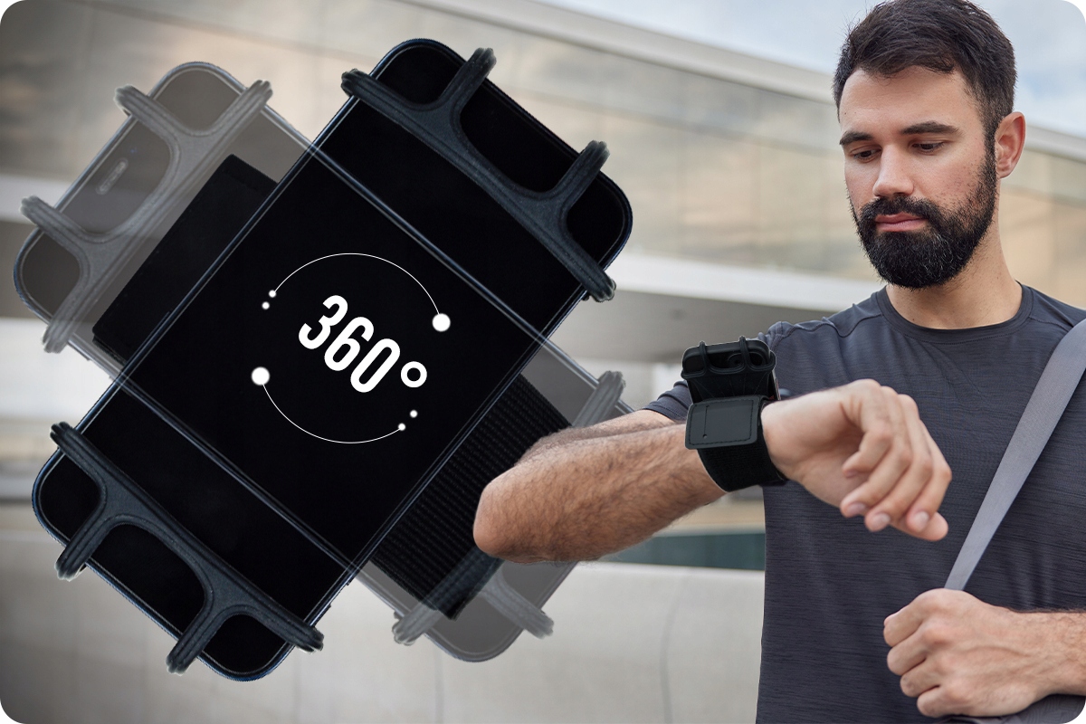 Еластична стрічка ідеально адаптується до форми руки, забезпечуючи максимальний комфорт під час тренування, стабільно тримаючи телефон в одному місце.