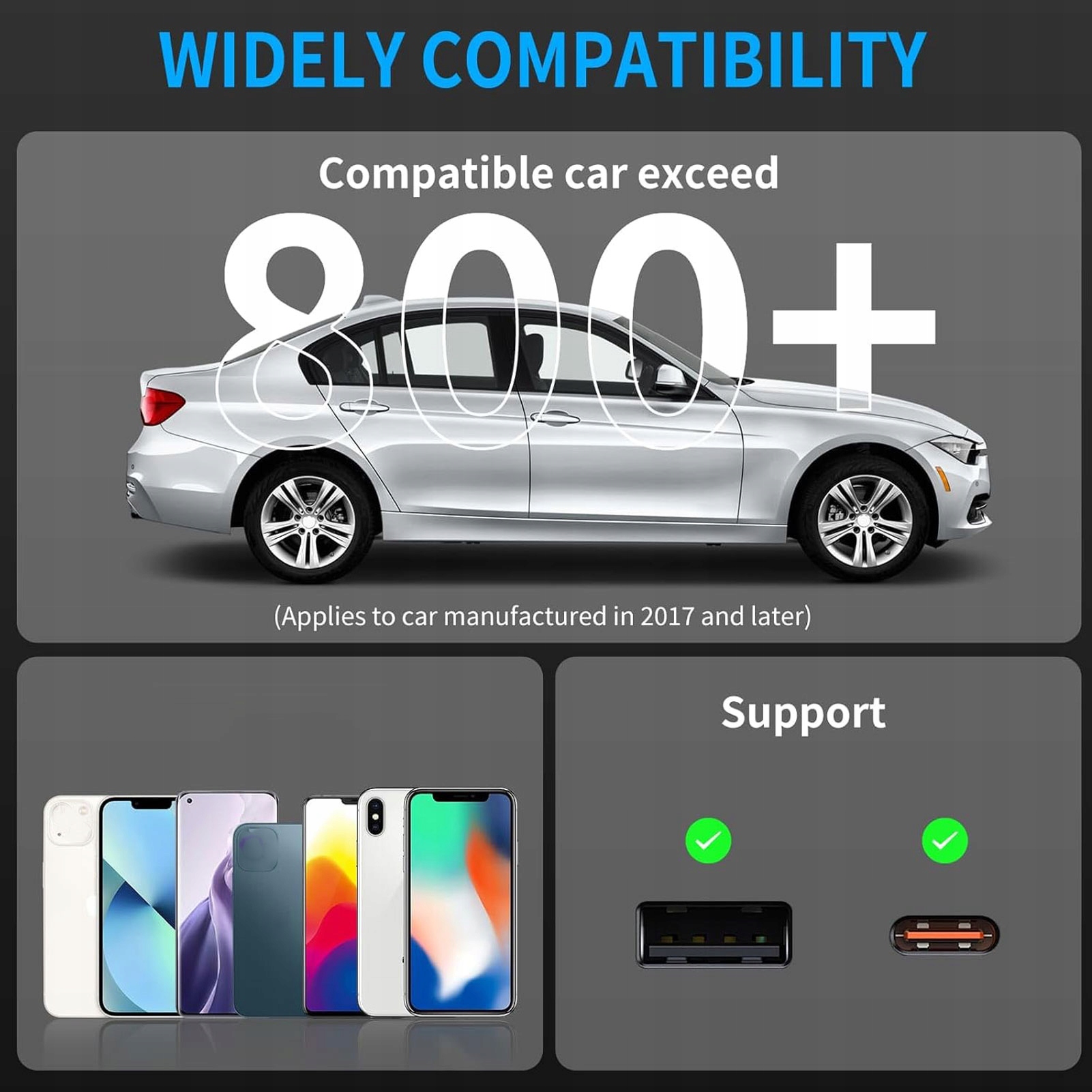 Функція:1. Висока сумісність: підтримує iOS 6 і вище, iOS 10 і вище, а також за кордоном для Android 11 і вище, що робить його придатним для широкого діапазону моделей смартфонів і транспортних засобів.