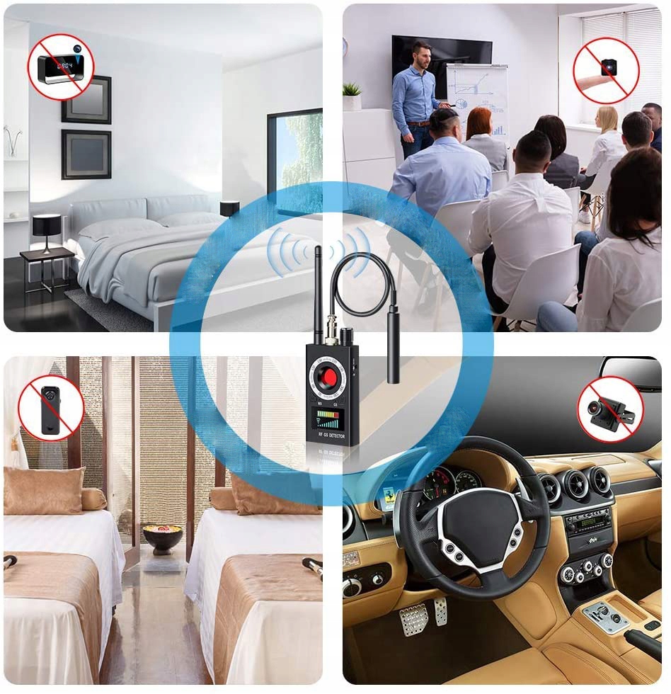 ✅ Універсальне розпізнавання та широке застосування - цей антишпигунський детектор сигналів оснащений ефективними мікросхемами та професійною технологією обробки сигналів. Усі види виявлення можна виконати за лічені хвилини, усуваючи всі підозрілі ризики. Функція автоматичного виявлення може ефективно запобігти підслуховуванню, фотографуванню та розкриттю особистої конфіденційності.