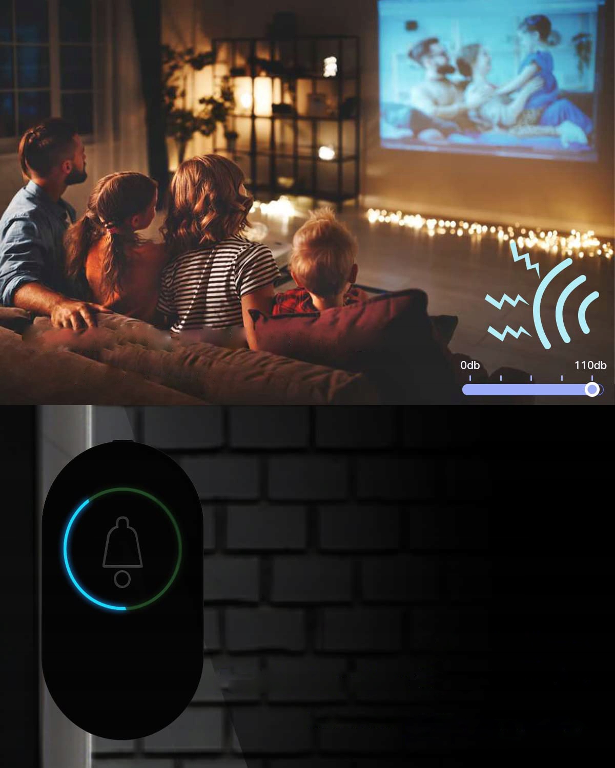 39 мелодій і 5 регульованих рівнів гучності, від тихого до 110 дБ. Від традиційних дверних дзвінків до всесвітньо відомих джинглів і сигналів лиха – підтримуються всі параметри. Тихий режим підходить для сплячих немовлят, а гучний режим достатньо голосний для людей похилого віку або людей із вадами слуху.