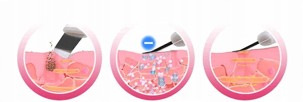 Завдяки благотворному впливу ультразвуку, т.зв. кавітація, вона відлущує мертву шкіру та ретельно очищає шкіру від надлишків шкірного сала, бактерій і залишків макіяжу. Процедура залишає шкіру надзвичайно свіжою.
