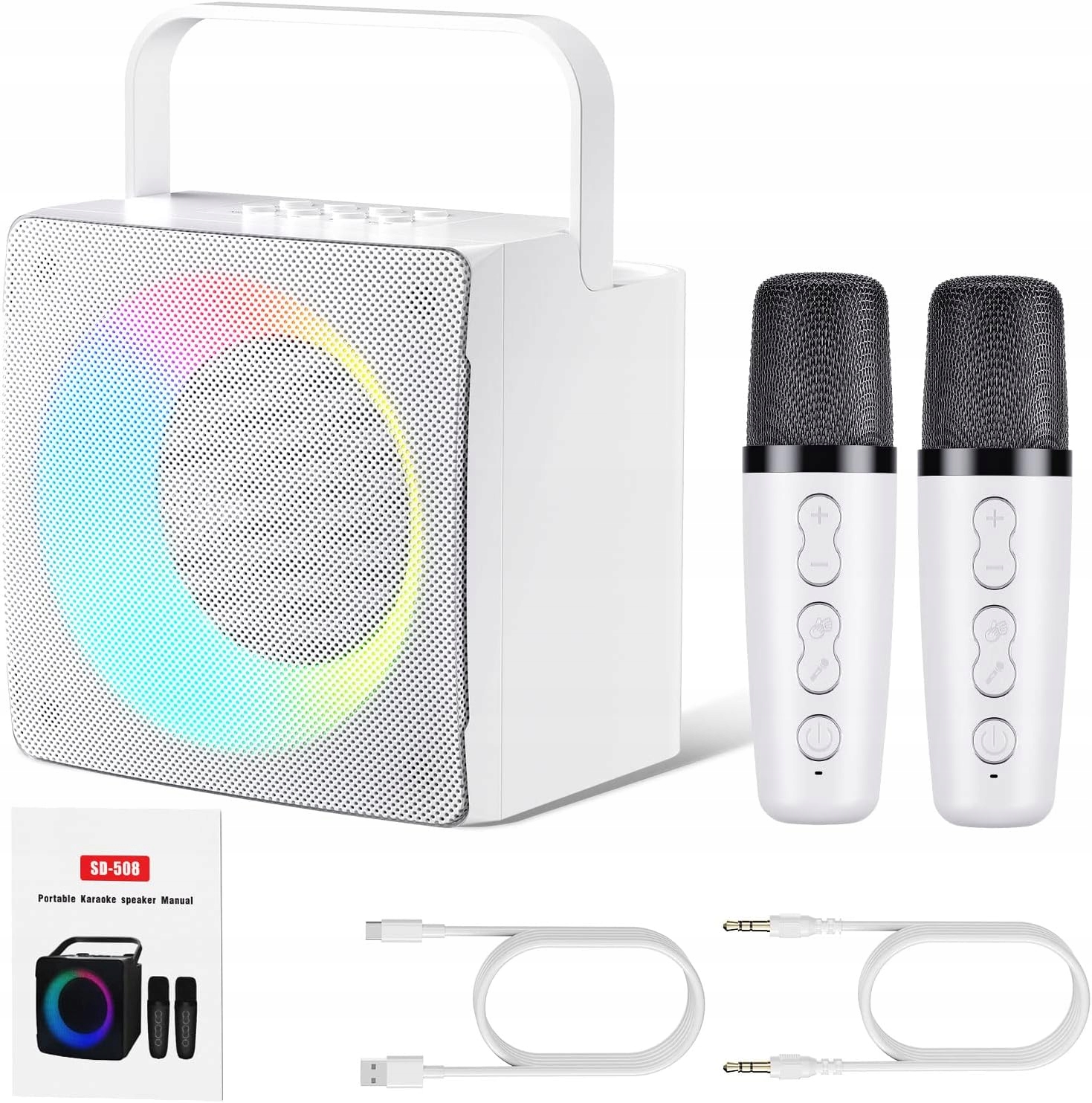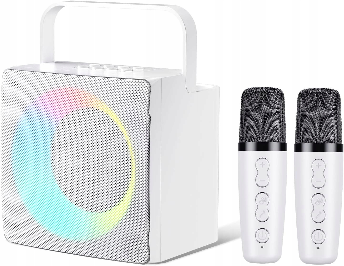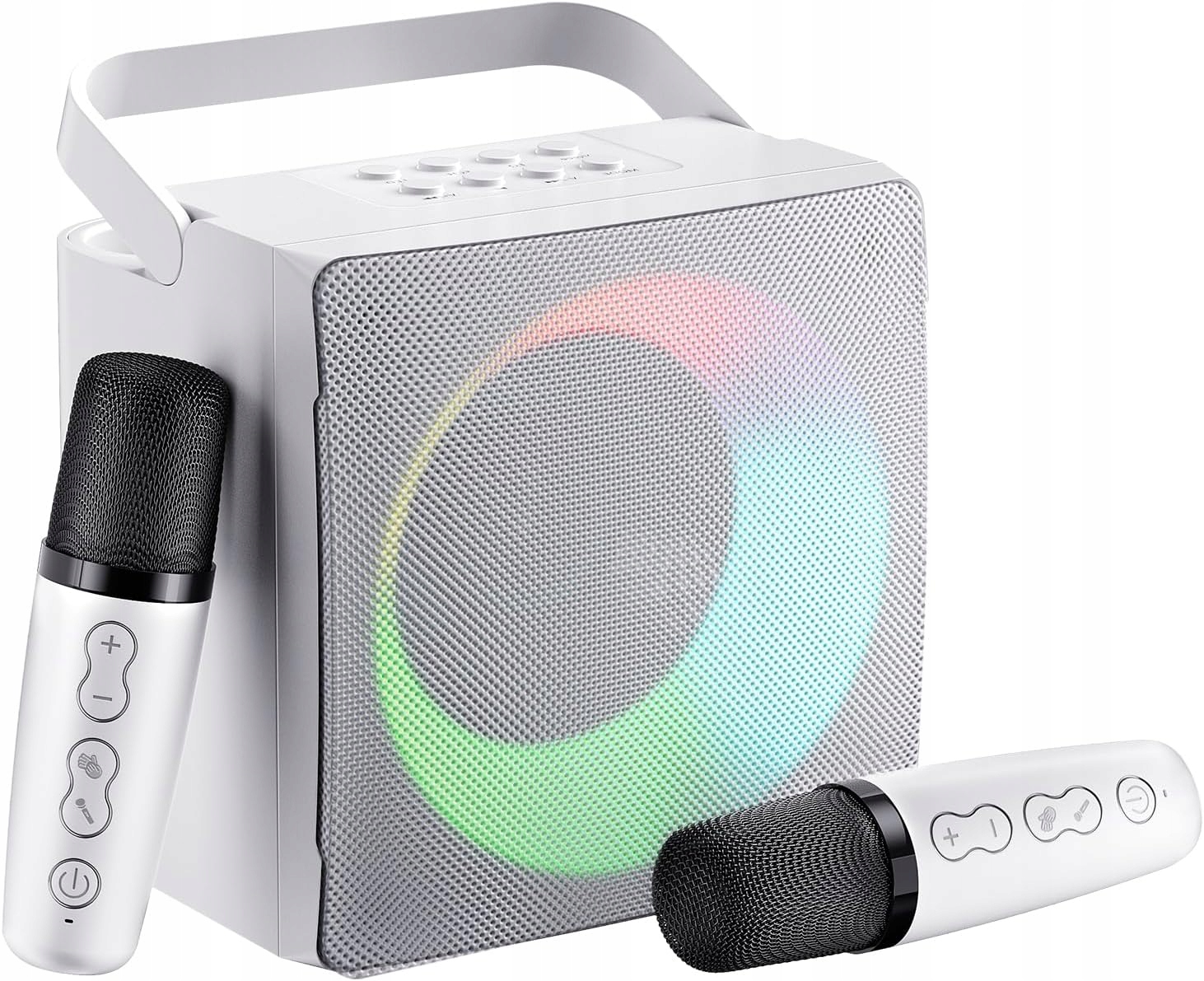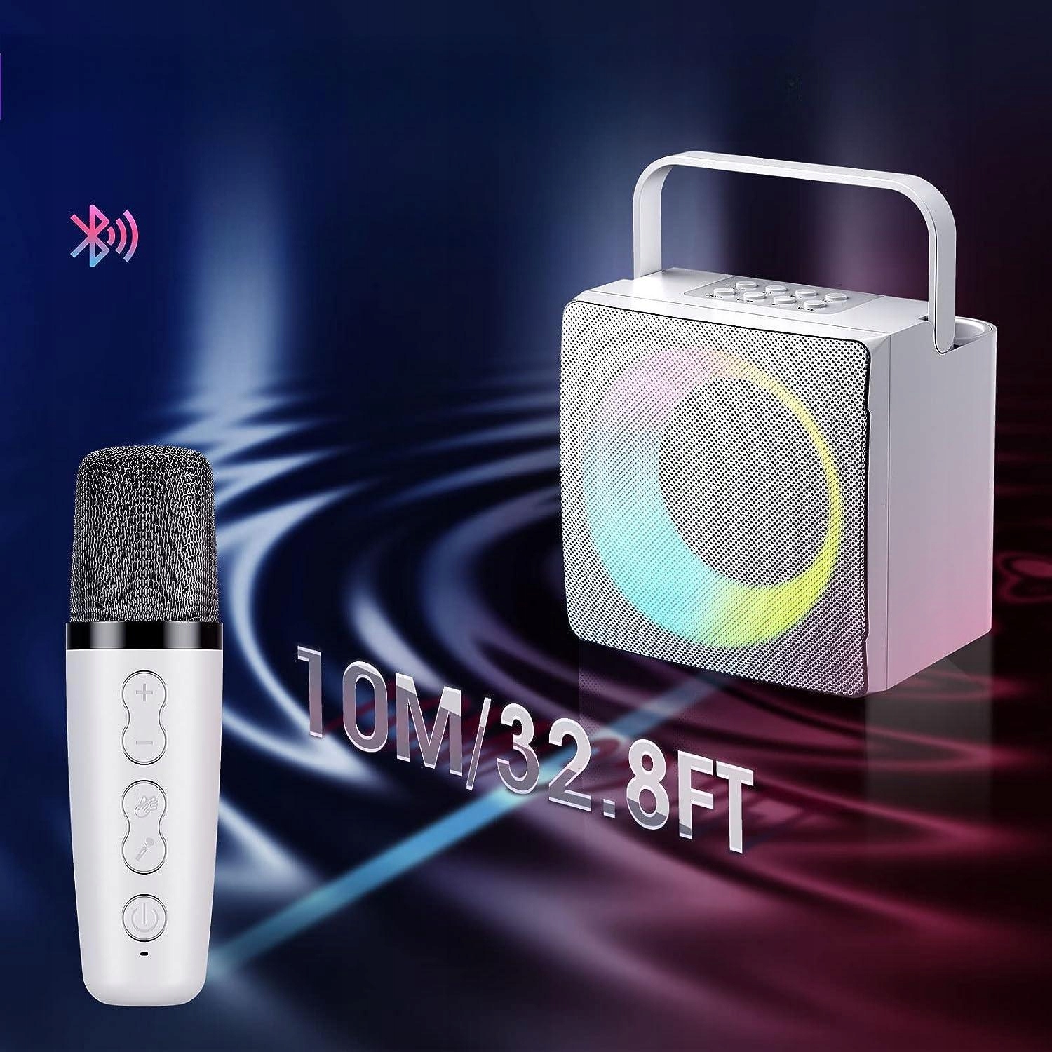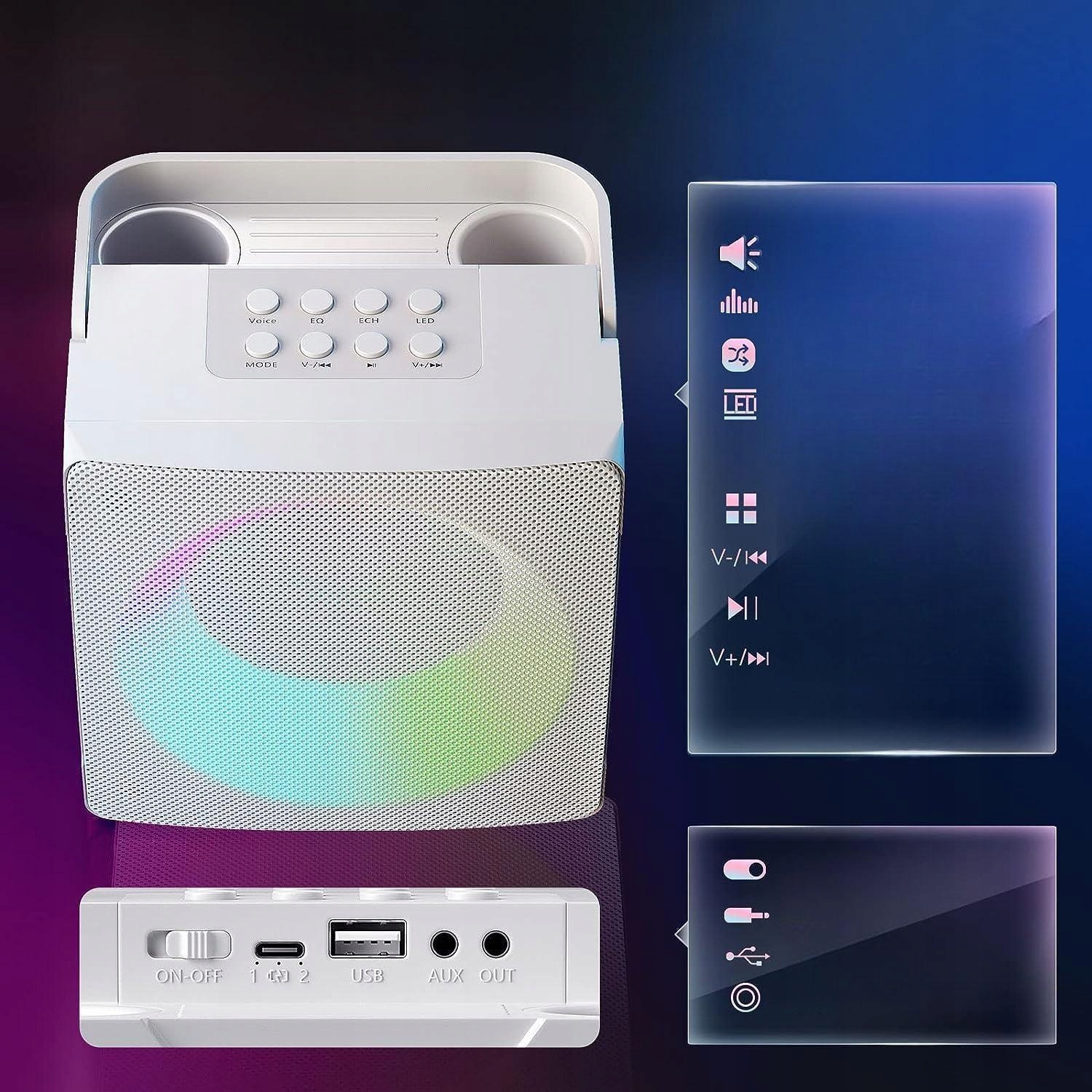 - Співаючий динамік відображає яскраві та барвисті світлодіодні вогні. Ви можете перемикати світлові ефекти, щоб створити атмосферу вечірки. Довго натисніть кнопку, щоб вимкнути світло. Ідеальний подарунок для родини та друзів
