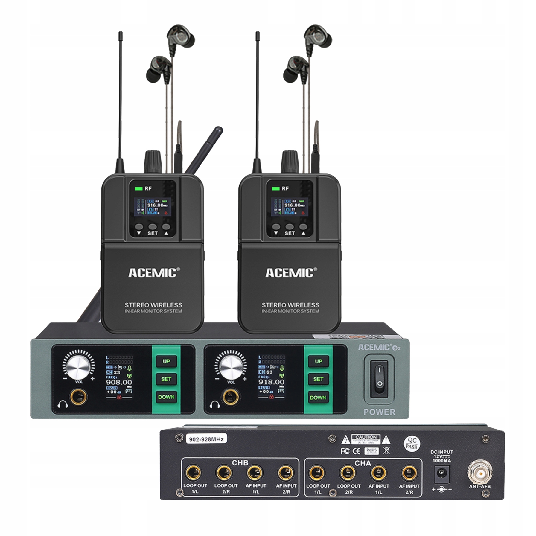 Acemic S2 — ідеальне рішення для музикантів, вокалістів, діджеїв, техніків сцени та всіх, хто очікує найвищої якості прослуховування під час виступів. Завдяки можливості підключення двох передавачів, можна керувати двома джерелами звуку одночасно. Це ідеальний вибір для музичних клубів, концертних сцен і студійних репетицій.