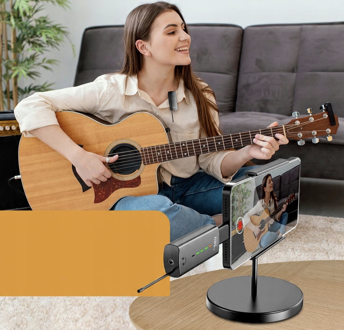 Бездротовий USB-мікрофон застосовує новітню цифрову бездротову технологію UHF, забезпечує більш стабільний сигнал, захист від перешкод і високоякісний звук. Конвертер C на iPhone 'a / телефон Android. Ідеально підходить для YouTube, TikTok, запису відео.