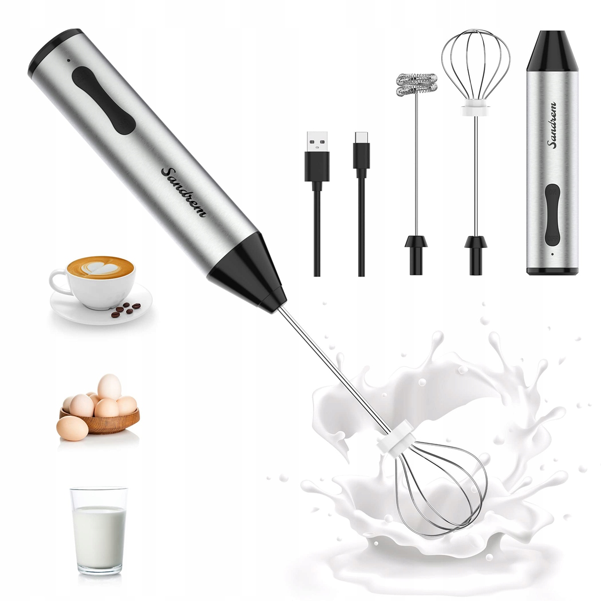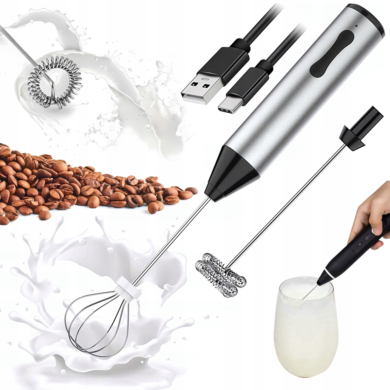 ⚡Електричний міксер із 2 швидкостями, низький рівень шуму, 2 головки з нержавіючої сталі, бездротовий спінювач ❗❗❗