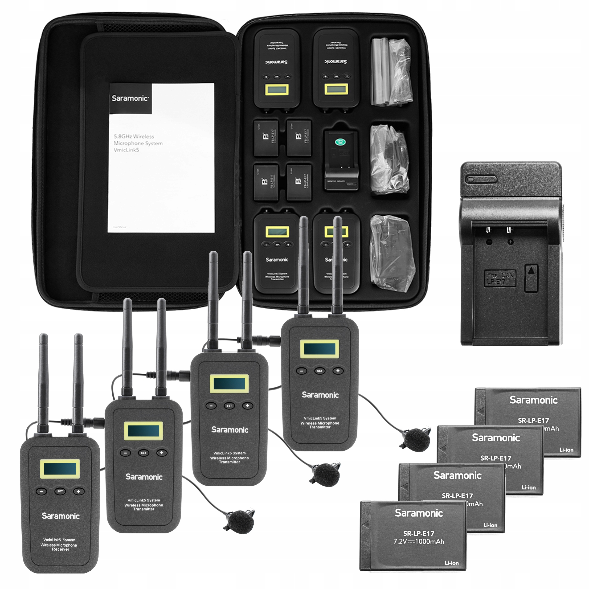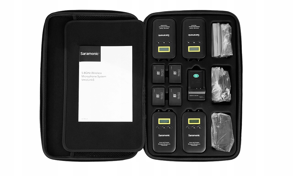 Набір Saramonic VmicLink5, окрім самих передавачів і приймача, пропонує набір практичних аксесуарів, зокрема: мікрофон, акумулятори, зарядний пристрій, ремінь і кріплення для камери. Додатковою перевагою є жорстка валіза, яка вміщує всі елементи набору, що ідеально підходить для подорожей.