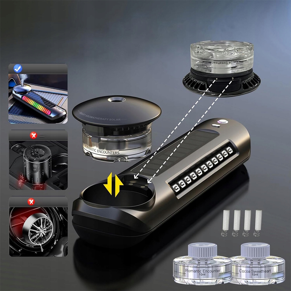 Модуль аромату має знімну конструкцію, а флакон і основа парфуму комбіновані зі знімним модулем. Конструкція магнітного всмоктування забезпечує просту та зручну заміну духів на 360°, що робить їх безпечнішим у використанні.
