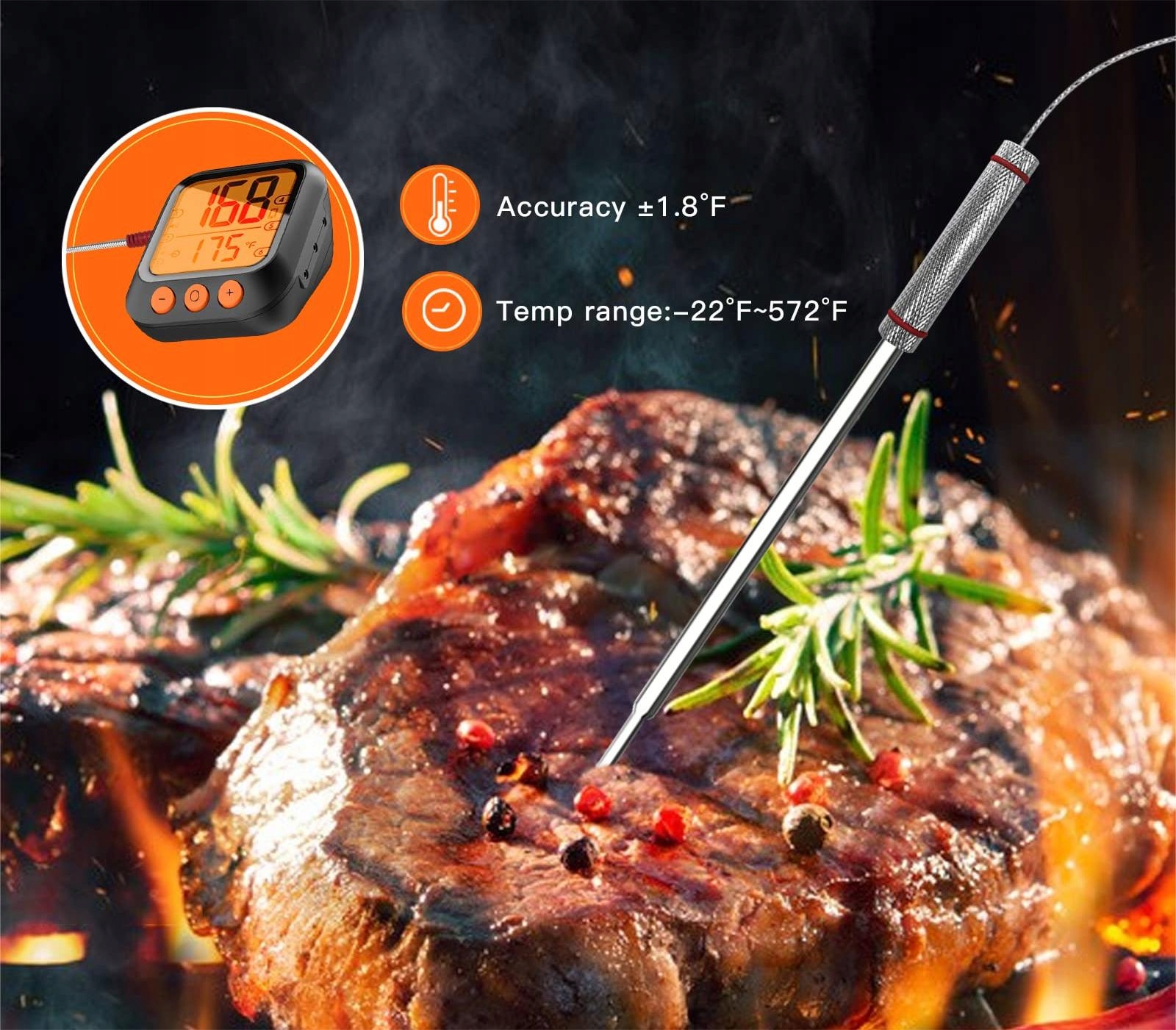 Бездротовий термометр Bluetooth через APP 2x Probe від -30°C до 300°C LCD 80m