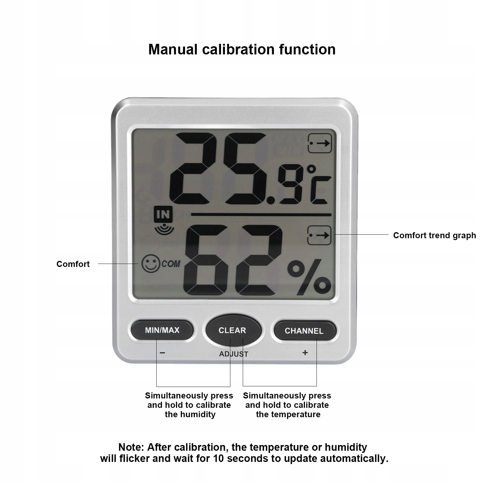 1. Ви прочитаєте: він може читати та оновлювати віддалено до восьми дистанційних датчиків гігрометра термо -терапії в одному численному з великого цифрового, впорядкованого джембо -дисплея.