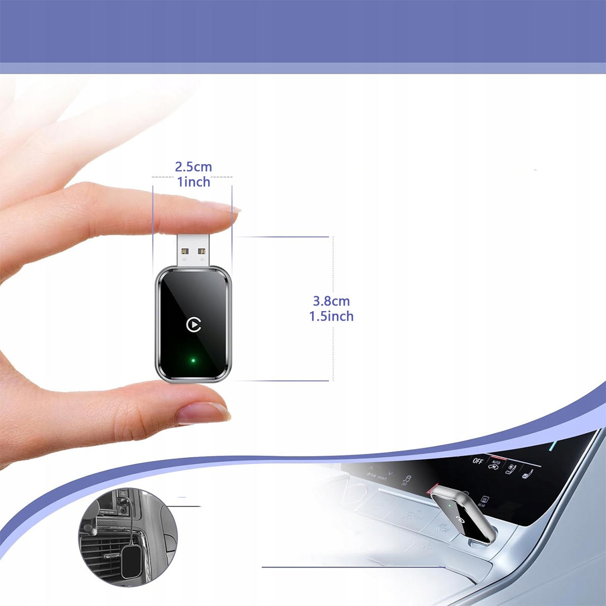 Бездротовий адаптер Android Auto має невеликі розміри та стильний дизайн, він займає мінімум місця у вашому автомобілі. Насолоджуйтеся чистим бездротовим звуком без шкоди для продуктивності та комфорту. Навіть якщо ви сідете в автомобіль і ввімкнете його під час розмови, CarPlay автоматично підключиться до вашого автомобіля, не від’єднуючись і не чекаючи встановлення з’єднання.