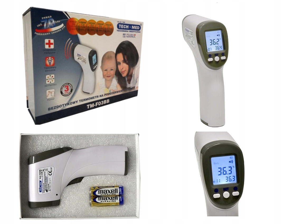 Tech-Med F03BB — це сучасний термометр, що використовує інфрачервону технологію вимірювання.