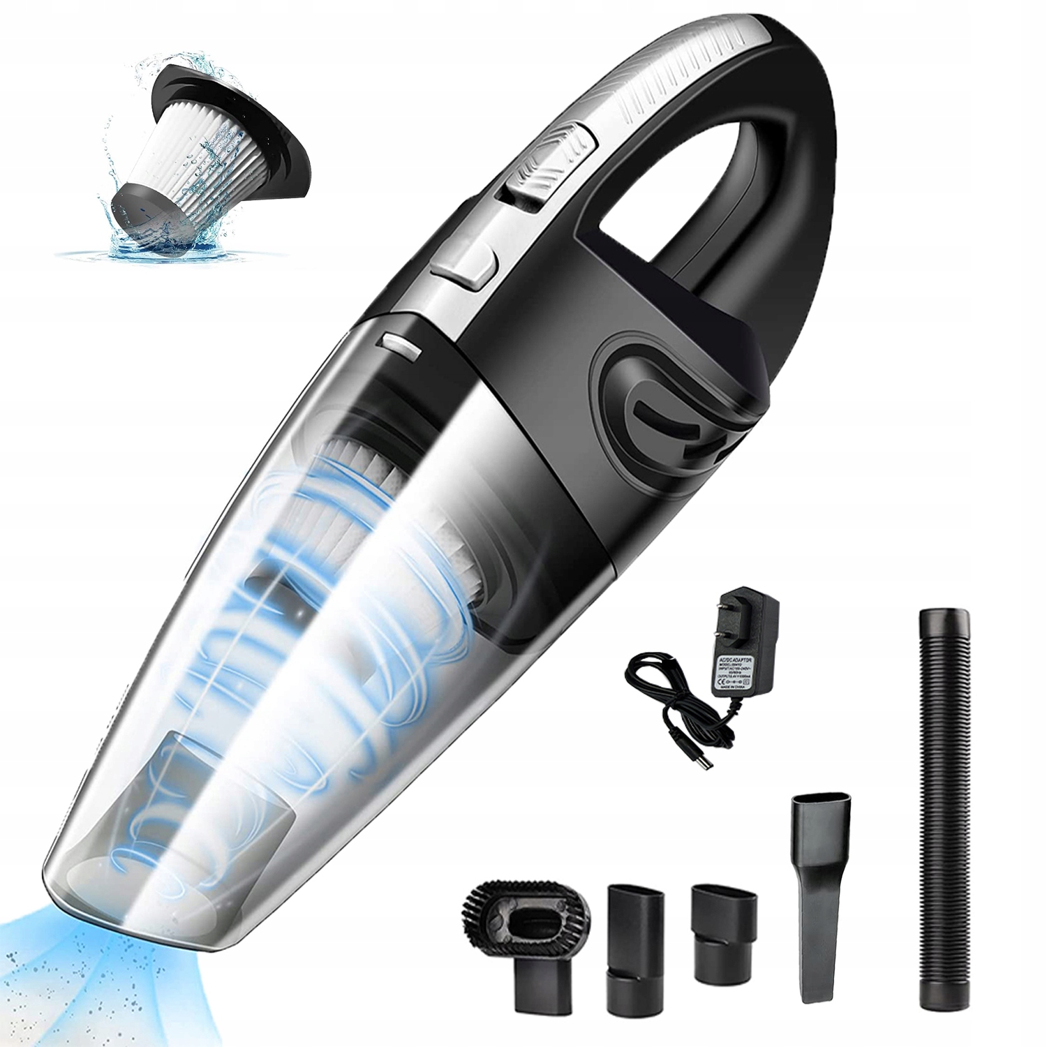 Ручний автомобільний пилосос оснащено вдосконаленим фільтром HEPA, у якому використовується високоякісний нейлоновий фільтр, який подовжує термін служби фільтра та ефективно запобігає потраплянню пилу в приводну частину, одночасно забезпечуючи чудову потужність всмоктування та продовжуючи термін служби пилососа. продукт.
