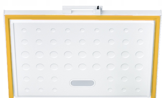 Досить, що після відкриття морозильної камери ви встановите кришку в зручному діапазоні 45-90 °, а петлі, які використовується виробником, заблокує його, щоб він не падав. Ви комфортно відкриєте обкладинку завдяки ергономічній ручці . У свою чергу, завдяки світлу світлодіодні лампочки ви можете легко побачити вміст морозильної камери.
