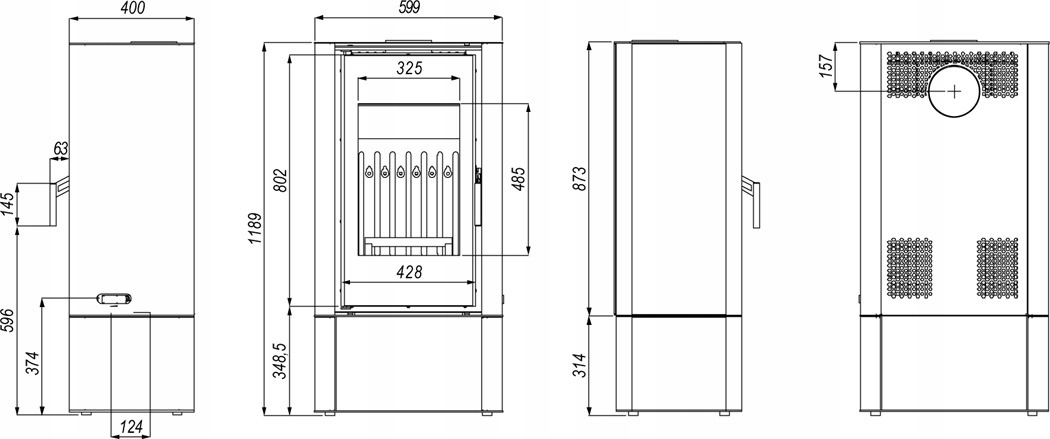 можливість вивести повітря до вогнища знизу та задньої частини печі.