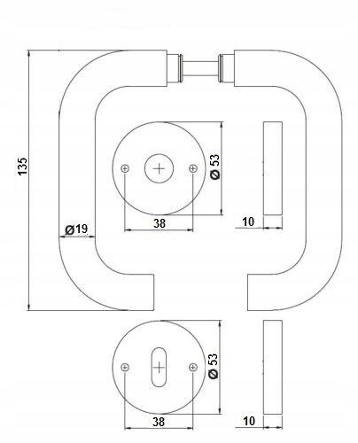 "U" ручка на круглій пластині з круглими розетками для патентної вставки