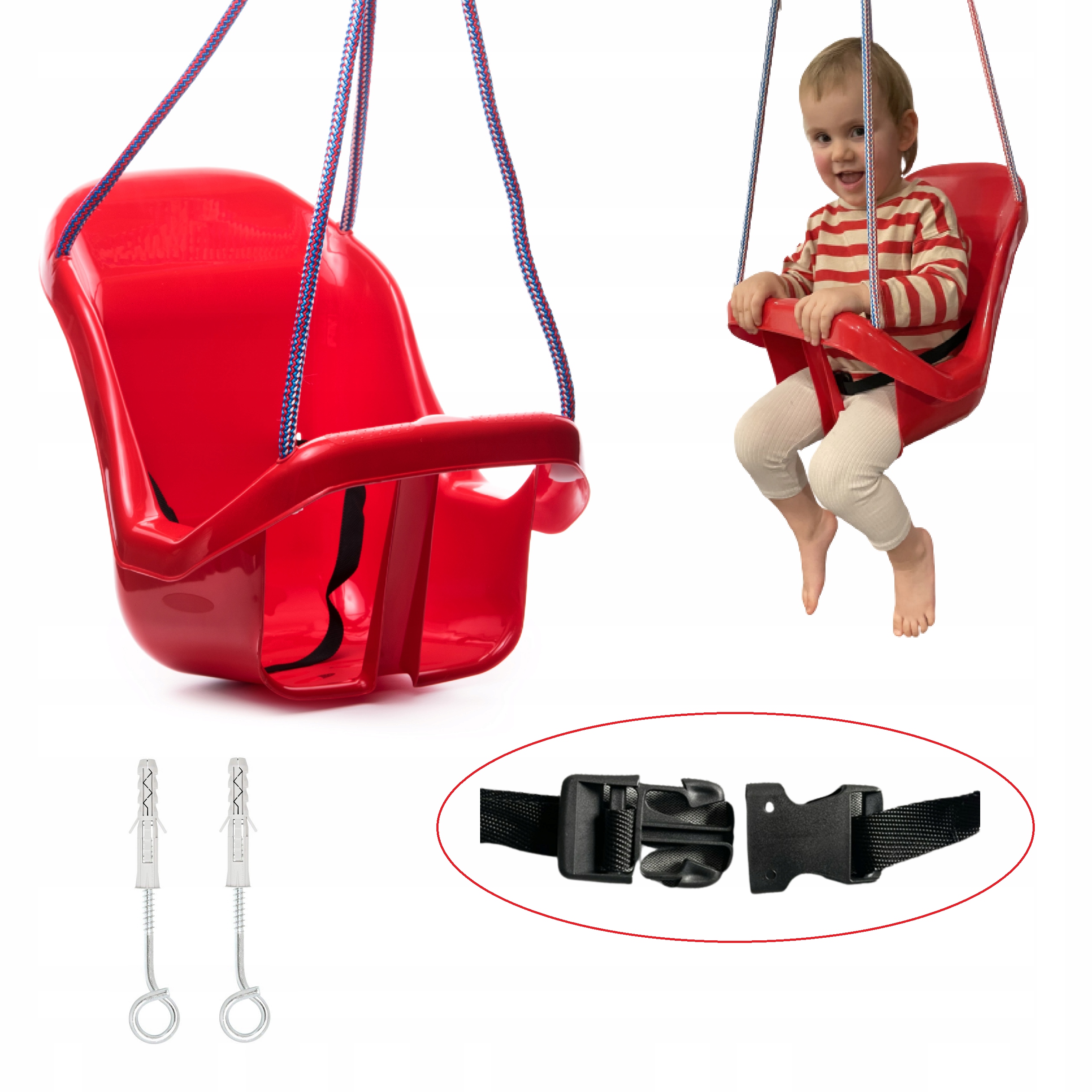 Виготовлена з високоякісного пластику яскравих кольорів, оснащена ременями безпеки та міцними ручками для підвішування вдома чи в саду.