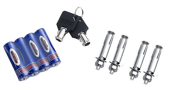 Сільна сталева конструкція, аварійне відкривання ключем, включає кріпильні елементи. В набір входять два ключі,батареї та розетки. Можливе кріплення сейфа до землі або стіни.