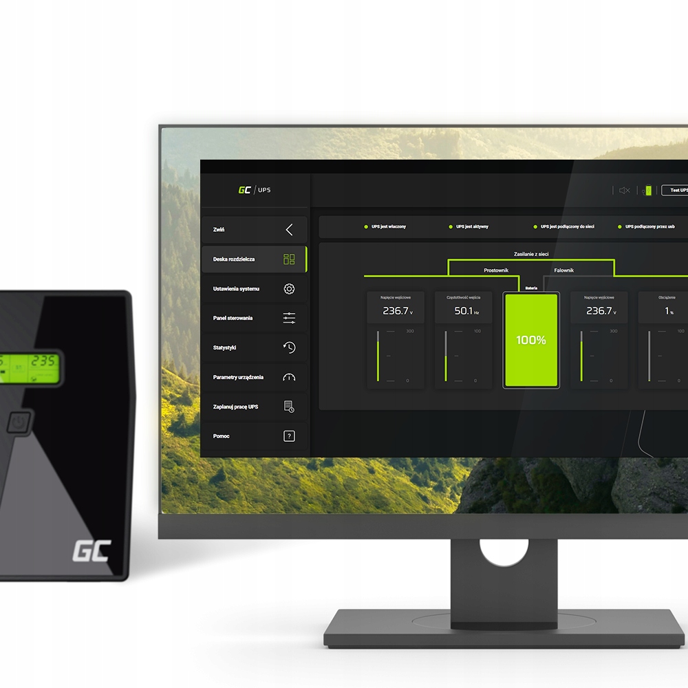 - ДБЖ Green Cell забезпечує повний захист усього підключеного обладнання під час втрати живлення та стрибків напруги. Завдяки цьому ви можете легко зберегти наслідки своєї роботи та безпечно вимкнути пристрій.