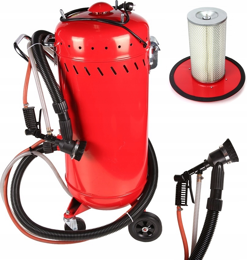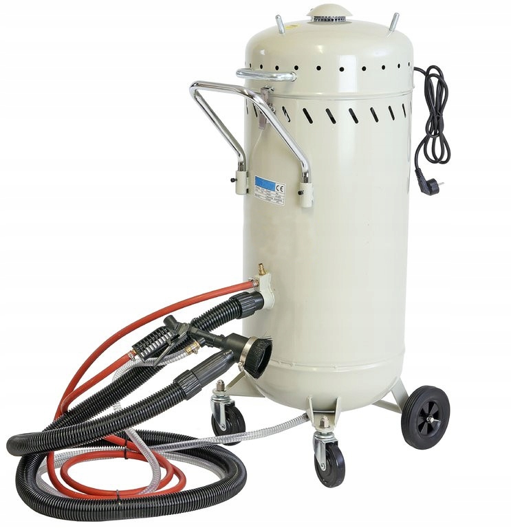 Оснащений піскоструминним пістолетом і вбудованим пилососом потужністю 1200 Вт, який всмоктує абразив, викинутий назад під тиском, що забезпечує роботу без пилу. Вбудований спеціальний високоякісний фільтр дозволяє повторно використовувати абразив, що дозволяє значно заощадити при піскоструминній обробці.