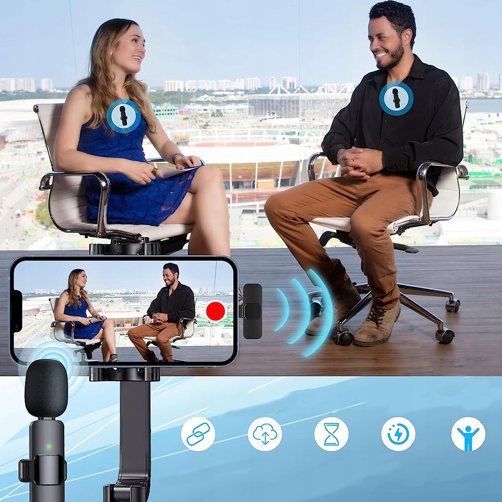Бездротовий зв’язок для iPhone: десять оновлених бездротових петличних мікрофонних масивів із безшумним бездротовим чіпом, чіпом автоматичної синхронізації мікрофона в режимі реального часу та передачею додатків 2.4G із дуже звуковими налаштуваннями (0,009 с), розпізнавання звуку узгоджено із зображенням у дійсності – час. Бездротовий петличний мікрофон, який добре працює в різноманітних шумних середовищах і забезпечує кристально чистий звук.