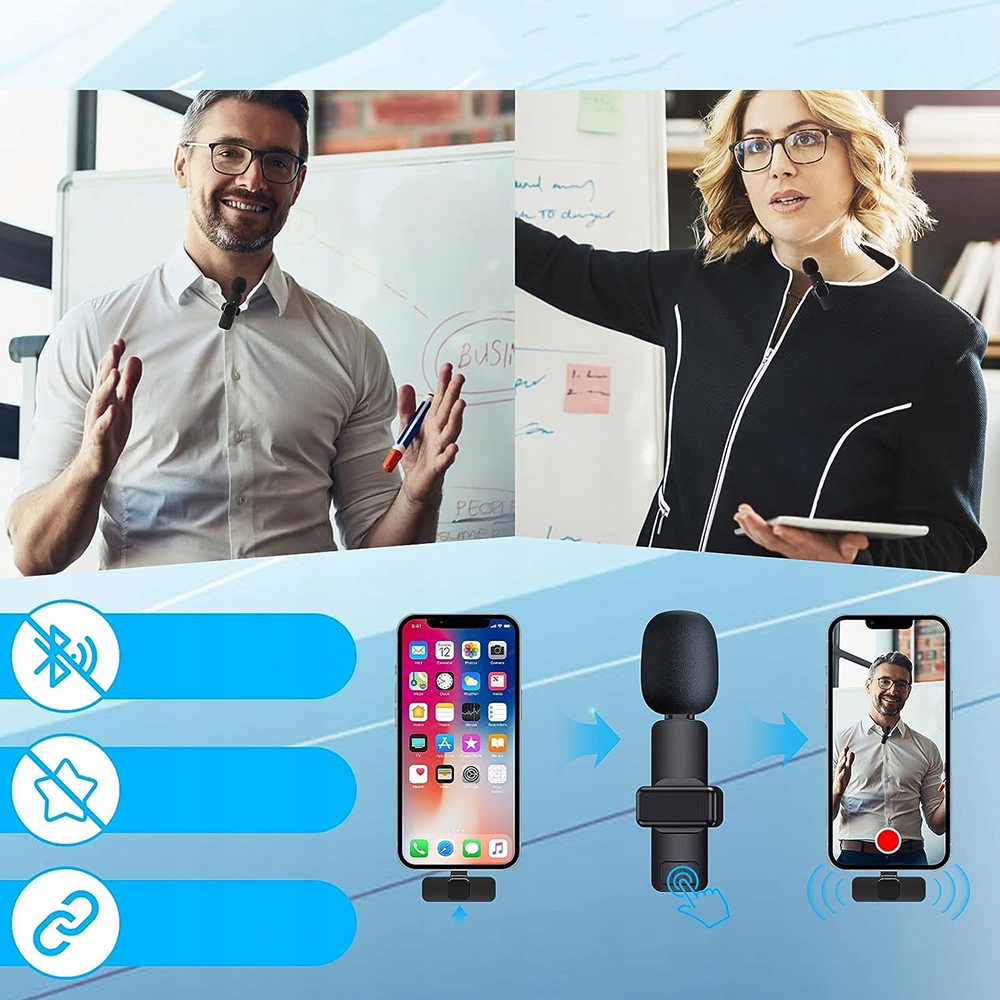 Бездротовий зв’язок для iPhone: десять оновлених бездротових петличних мікрофонних масивів із безшумним бездротовим чіпом, чіпом автоматичної синхронізації мікрофона в режимі реального часу та передачею додатків 2.4G із дуже звуковими налаштуваннями (0,009 с), розпізнавання звуку узгоджено із зображенням у дійсності – час. Бездротовий петличний мікрофон, який добре працює в різноманітних шумних середовищах і забезпечує кристально чистий звук.