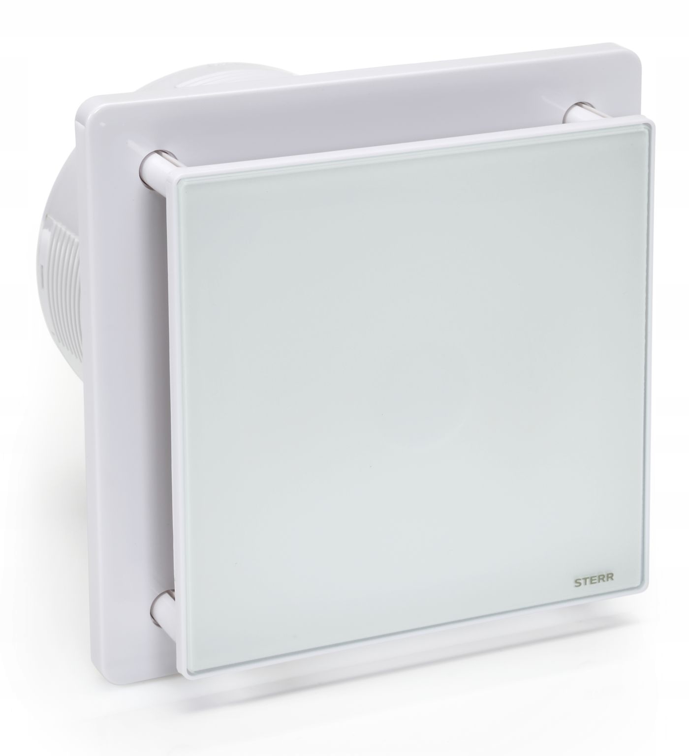 Вентилятор для ванної кімнати зі скляною передньою панеллю, гігростатом і зворотним клапаном. Зі смаком і сучасним виглядом.